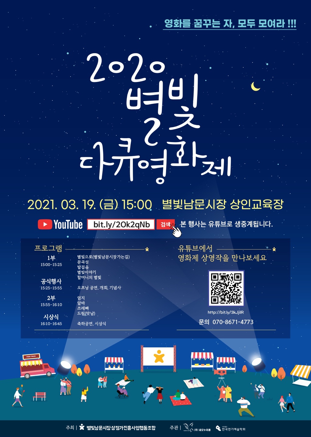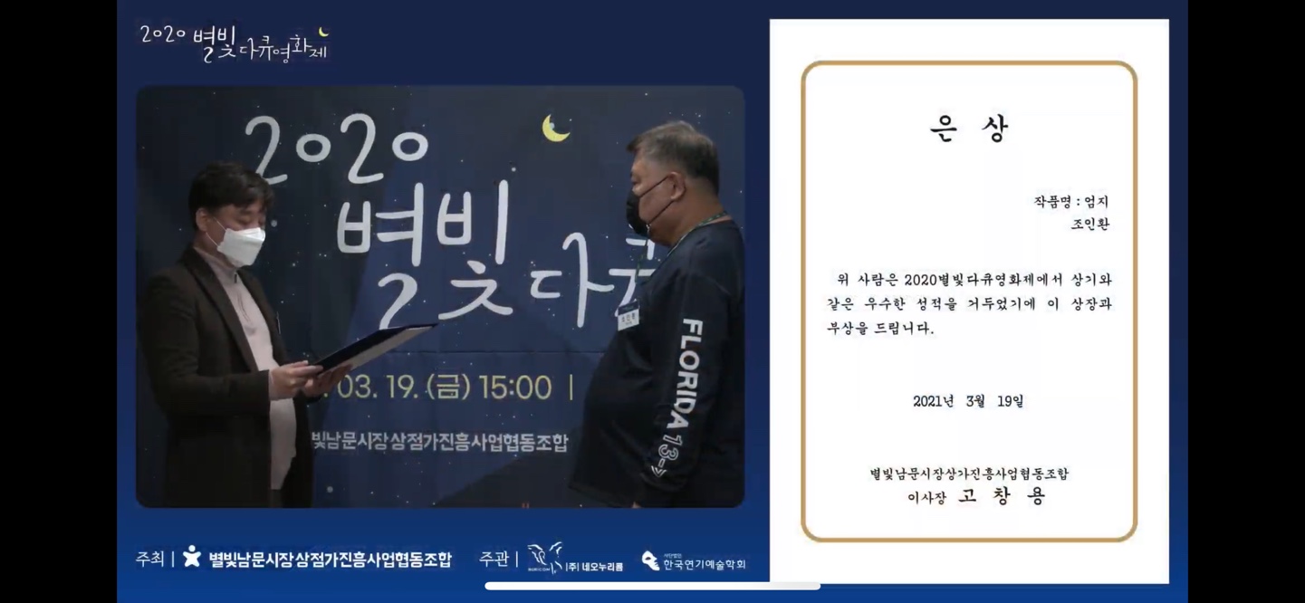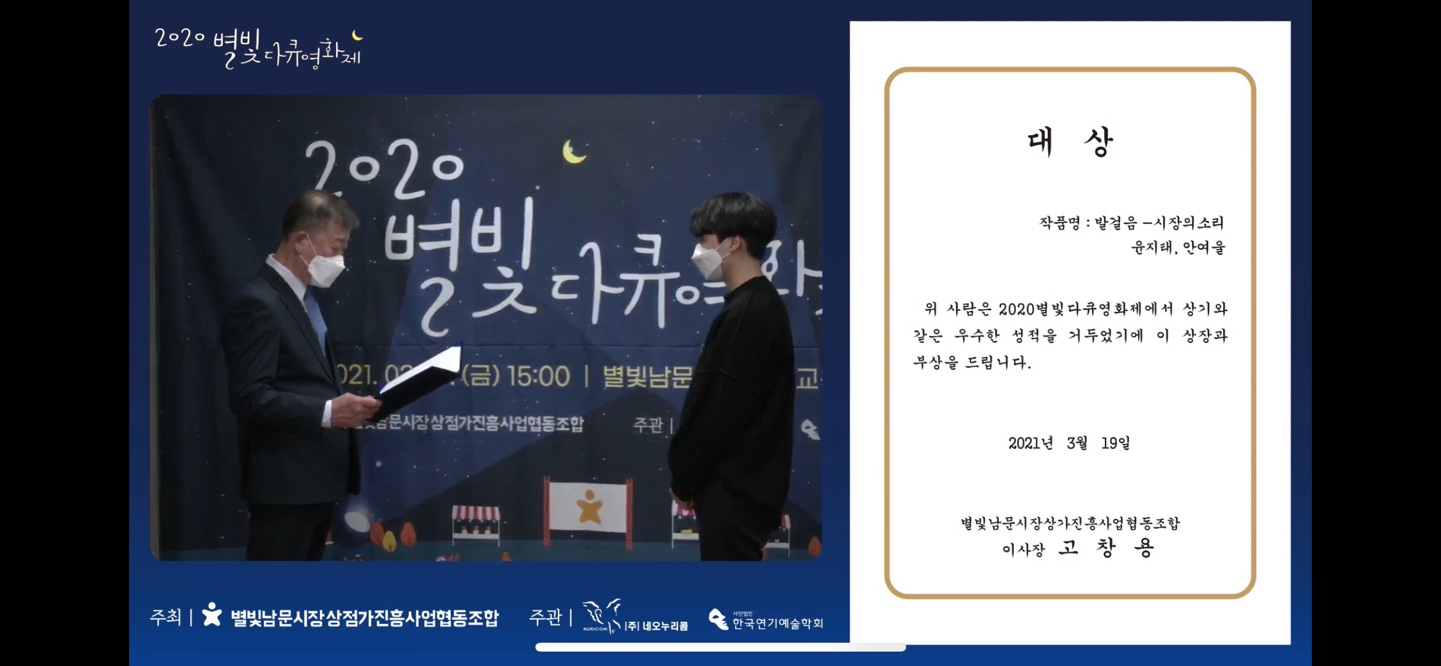 2020별빛다큐영화제관리자 [2021-03-22 18:24:21] 행사명 : 2020 별빛다큐영화제일 정 : 3월 19일(금) 오후 3시장 소 : 별빛남문시장 상인회 교육장내 용 : 영화제 / 시상식 / 축하공연주 최 : 별빛남문시장상점가진흥협동조합주 관 : (사)한국연기예술학회<영화제><축하공연><시상식> 이전글 2021상반기 이사회의와 연구윤리세미나 다음글 2021 춘계학술대회 목록으로 바로가기